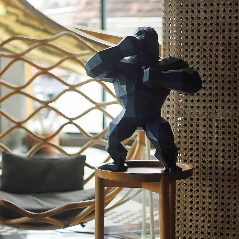 Place the 3D animal decoration on a shelf or table in your home. Taking a chest beating position our King Kong paper decoration depicts power and might. Taking a chest-beating position our King Kong paper decoration depicts power and might.