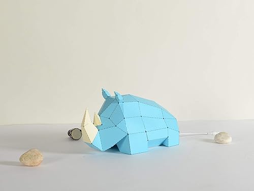Amazon Com Cute Rhino Paper Lamp Kit Diy Paper Craft Kit Creative Table Lamp Magic Bedside Light 3d Papercraft For Kid Gift Multi Color Options 6 7 Inches High With Dimmable Touch Led Bulbs By Boardattack Handmade