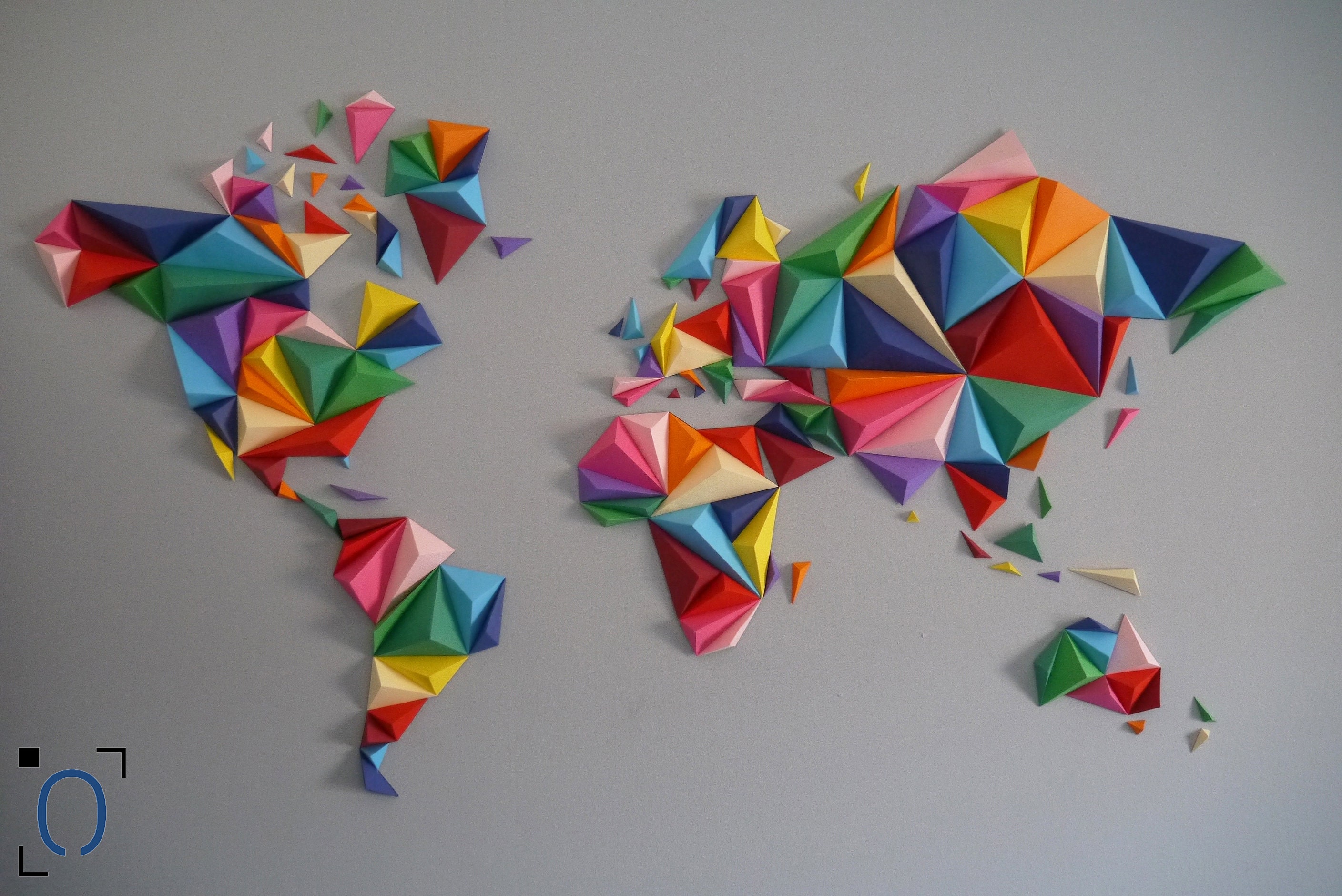 Kit Papercraft World Map 3d Multicolor S M L Xl Size Wall Etsy