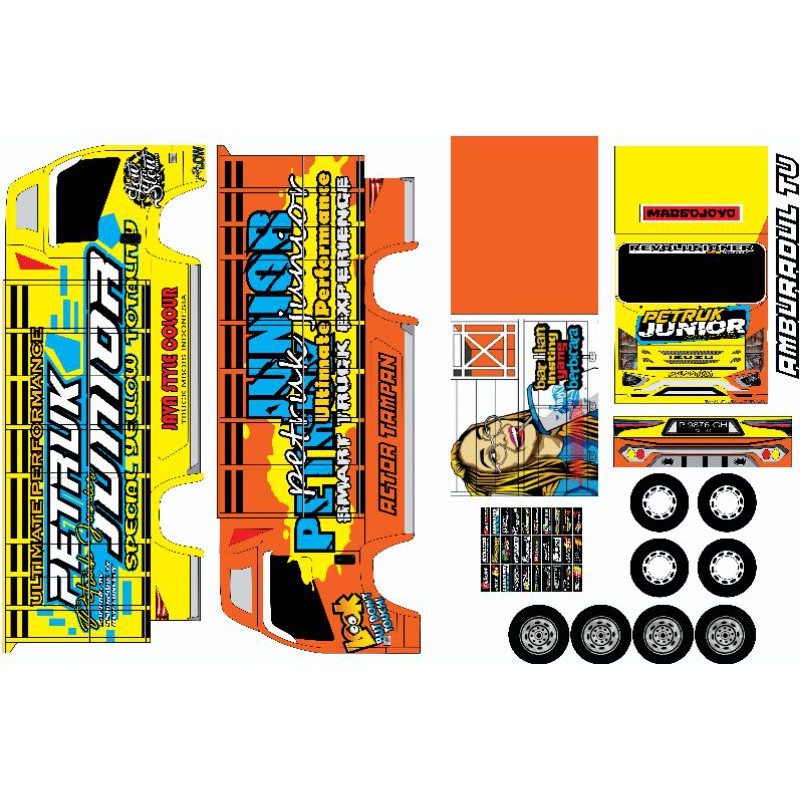 Lembaran Stiker Papercraft Truk Oleng Ukuran P 30 Petruk Junior Murah Shopee Indonesia